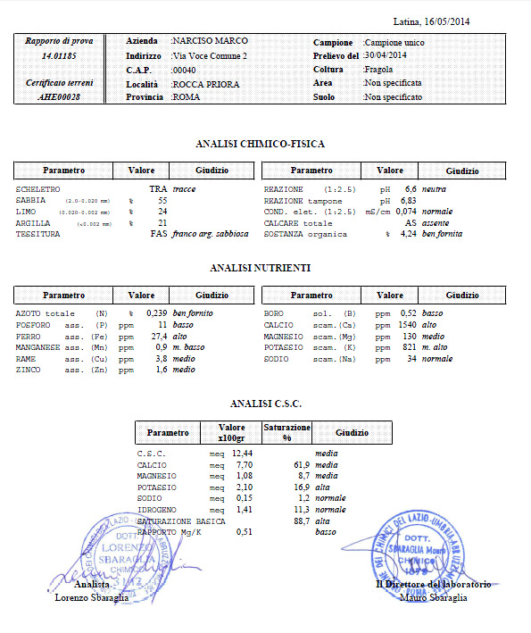 A questo scopo sottoponiamo i nostri campi a periodiche analisi chimiche, per garantire un frutto puro di massima qualità. Solo un prodotto coltivato a queste condizioni può definirisi naturale 100% e di qualità. Il sapore, l'aroma, il profumo e la dolcezza verranno definite dalla qualità degli elementi base: acqua e terra. Queste ultime ne costituiranno i principi nutritivi, ossia presenza di abbondanti vitamine e sali minerali caratteristici del frutto.